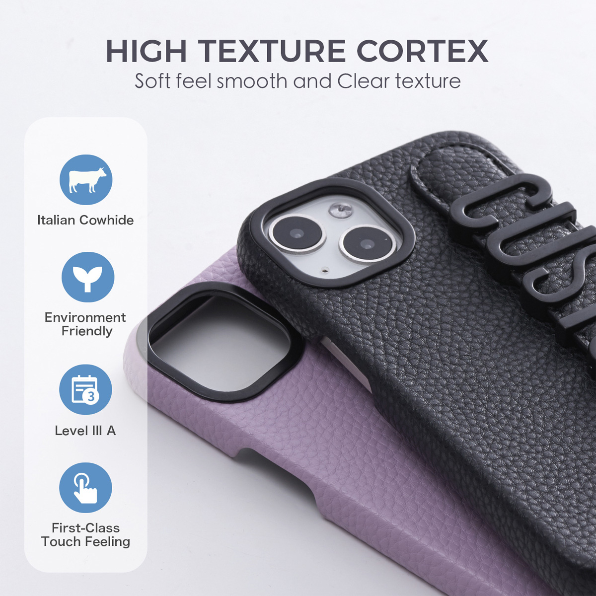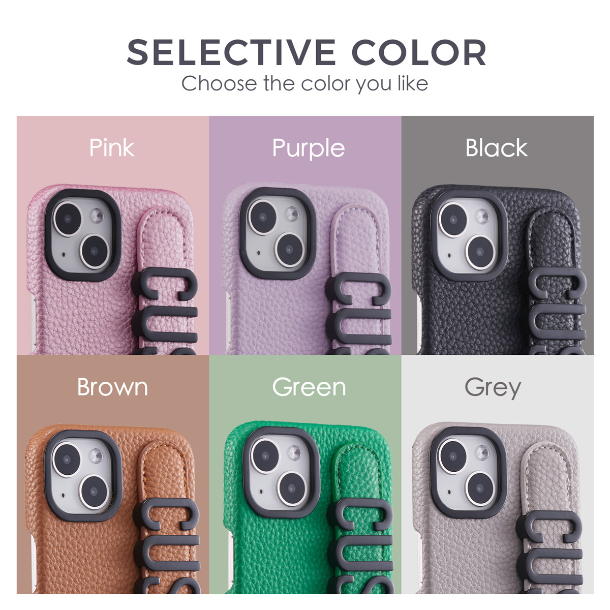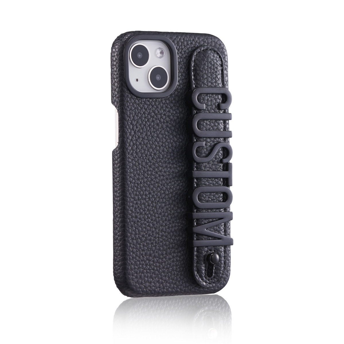 Introducing the GlareGleam Customizable PU Leather Wristband Phone Case, designed to combine style and functionality. Crafted from high-quality PU leather, this case offers a luxurious feel while providing robust protection for your iPhone. The unique metal letter wristband not only adds a touch of personalization but also serves as a convenient stand for hands-free viewing.